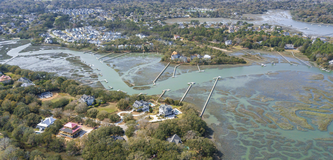The island is comprised of various communities and subdivisions rather than distinct official sections. It features homes with waterfront views and is a short drive to nearby Folly Beach for surfing.